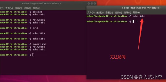 (虽然用export命令修饰后,变量可以被shell进程的子进程访问了,但是其他shell进程还是无法访问!)