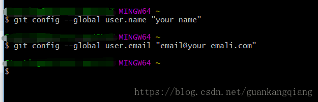 2、设置你的信息,就是你想上传到github的时候会同时记录到上面去,显示是谁提交的