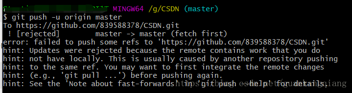 出现这个错误是因为本地commit一个提交和远端服务器中的代码有冲突