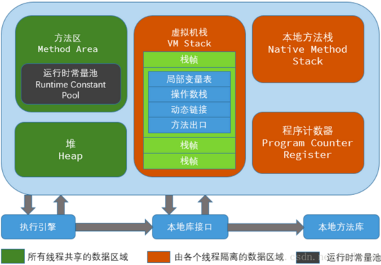 - 虚拟机栈:是描述java方法执行的内存模型,每个方法在执行的同时都会创建一个栈帧(Stack Frame)用于存储局部变量表、操作数栈、动态链接、方法出口等信息。每一个方法从调用直至执行完成的过程,就对应着一个栈帧在虚拟机栈中入栈到出栈的过程。栈帧( Frame)是用来存储数据和部分过程结果的数据结构,同时也被用来处理动态链接 (Dynamic Linking)、 方法返回值和异常分派( Dispatch Exception)。栈帧随着方法调用而创建,随着方法结束而销毁——无论方法是正常完成还是异常完成(抛出了在方法内未被捕获的异常)都算作方法结束。