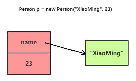1、红色矩形表示一个引用(地址)或一个基本类型的数据,绿色矩形表示一个对象,多个红色矩形组合在一块,可组成一个对象。