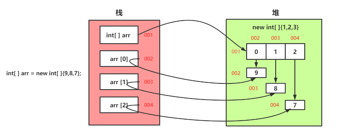 上面这么说还是有点懵懵懂懂的,可以画图解看看 Java 数组在内存中的存储是怎么样的?