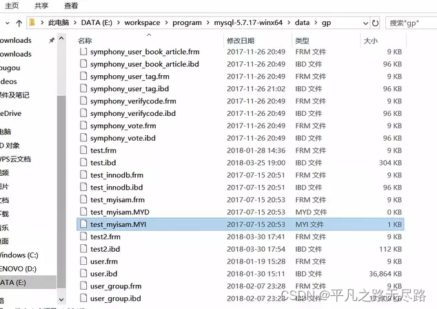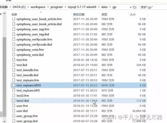我们的MYI文件字面上降的就是我们index(索引)文件; MYD文件是data文件,FRM是我们原始数据文件。
