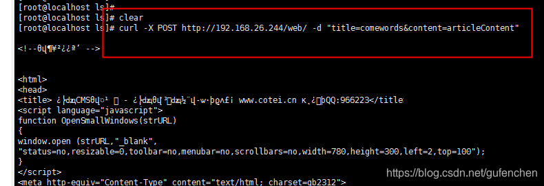 curl -X POST http://192.168.26.244/web/ -d "title=comewords&content=articleContent"