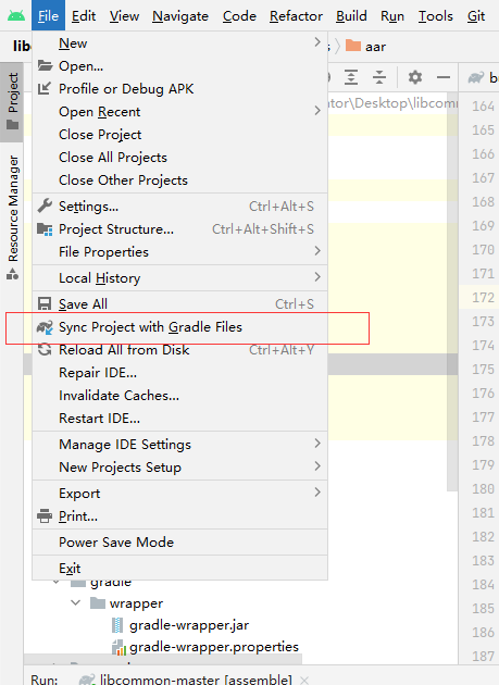 选择状态栏 File ---> Sync Project with Gradle Files --->等待同步成功