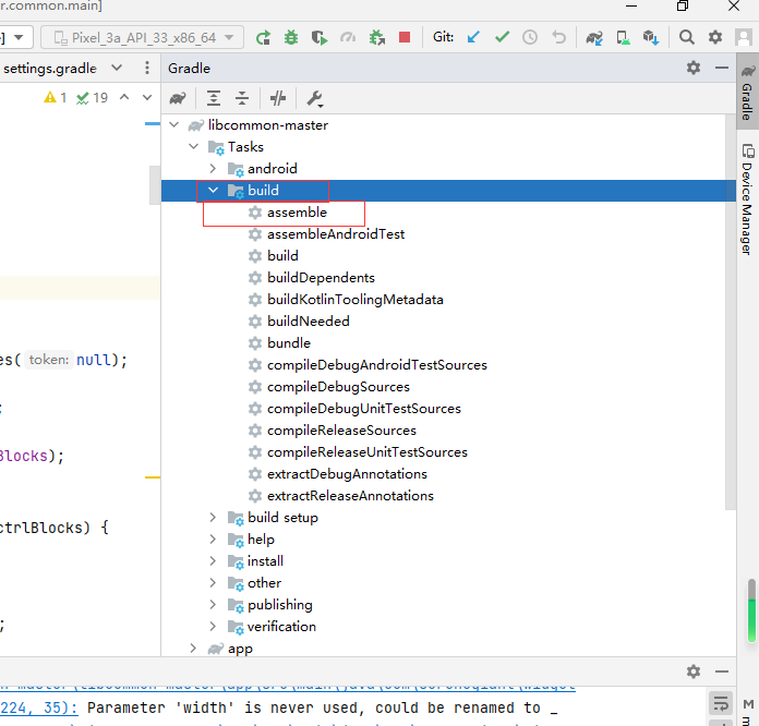 找到对应的module下的Tasks---> build --->双击assemble,即稍后就可打包成aar了