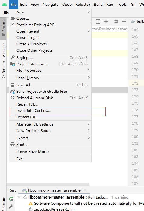 选择状态栏 File ---> Invalidate Caches... ---> Invalidate and restart