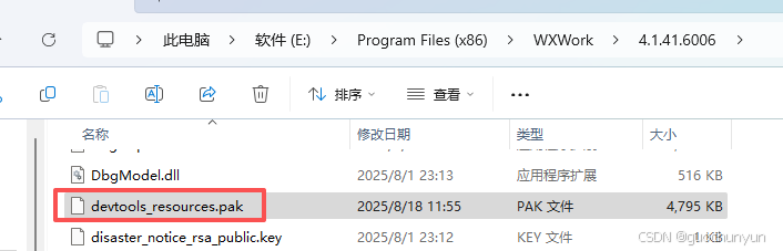 把 devtools_resources.pak放到企业微信的安装目录下,如:C:\Program Files (x86)\WXWork\4.1.41.6006