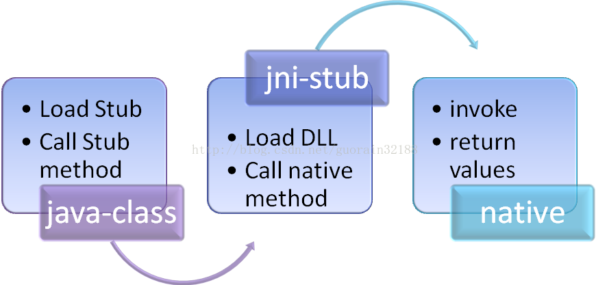 Java的平台无关特性使得java语言具有write once , run everywhere的巨大优势。但是,java为了可以调用其他语言(C,C++等)的动态链接库,发挥其他语言的优势,java采用JNI机制使得开发者可以调用操作系统相关实现的库函数。 其中JNI的原理图如下: