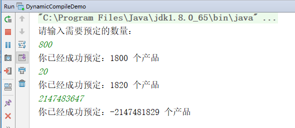 System.out.println("你已经成功预定:" + cur + " 个产品");