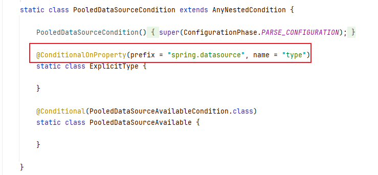 @Conditional(PooledDataSourceCondition.class)这个告诉我们指定的配置文件中,必须要有type属性。