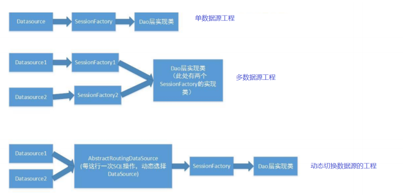 Spring内置了一个AbstractRoutingDataSource,它可以把多个数据源配置为一个Map,然后根据不同的key返回不同的数据源。