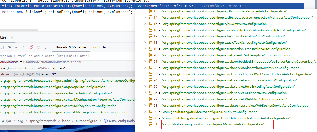 所以我们需要打开MybatisAutoConfiguration这个类
