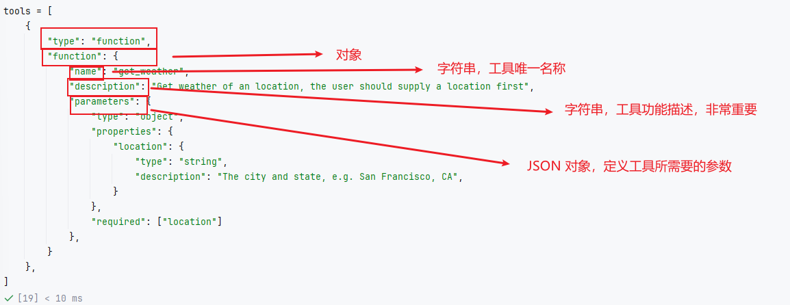 # 确保参数是合法的JSON字符串,即使工具不要求参数,也需要传递空字典
