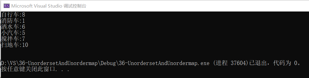 cout << um1.erase(um1.find("搅拌车"))->first << endl;