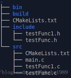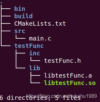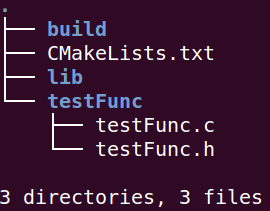 有时只需要编译出动态库和静态库,然后等着让其它程序去使用。让我们看下这种情况该如何使用cmake。首先按照如下重新组织文件,只留下testFunc.h和TestFunc.c,