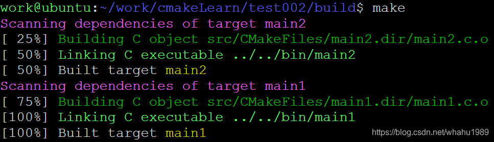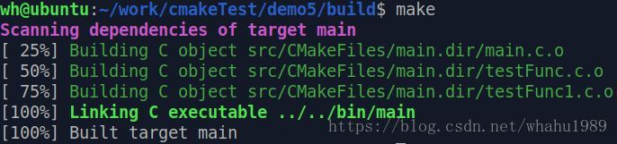 可以看到执行cmake生成的Makefile可以显示进度,并带颜色。再看下目录下的文件,
