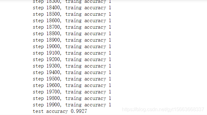 print("step %d, traing accuracy %g" % (i, train_accuracy))