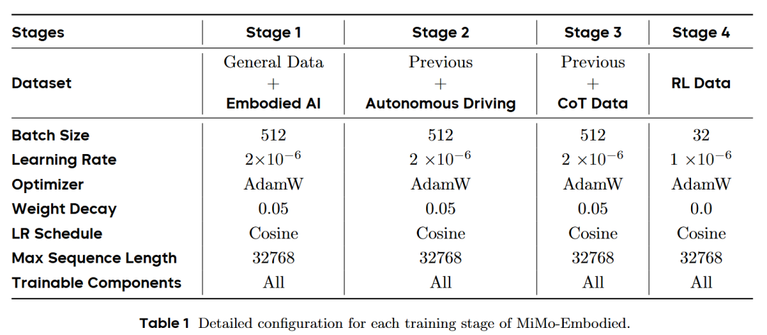 如何在单一模型中融合差异巨大的跨域数据,同时避免“灾难性遗忘”?小米团队设计了一套严谨的四阶段渐进式训练策略(Progressive Four-stage Training Strategy),这也是该模型性能卓越的关键。
