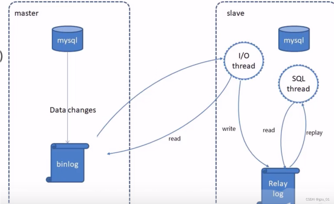 主要原理:master将数据保存在二进制日志中,I/0向dump发出同步请求,dump把数据发送给I/0线程,I/O写入本地的中继日志