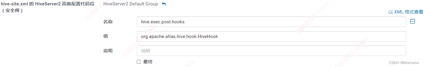 hive-site.xml的HiveServer2 高级配置代码段 (安全阀)
