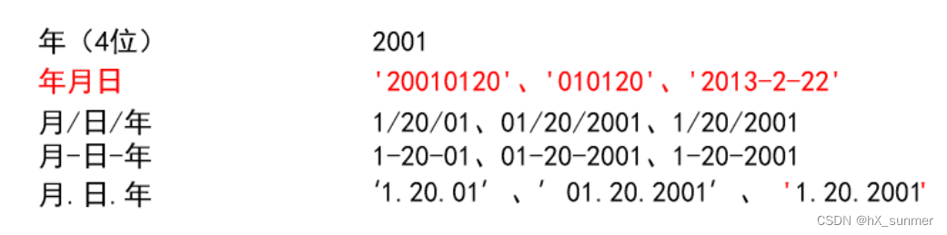 日期部分常用的表示格式如下: