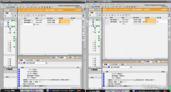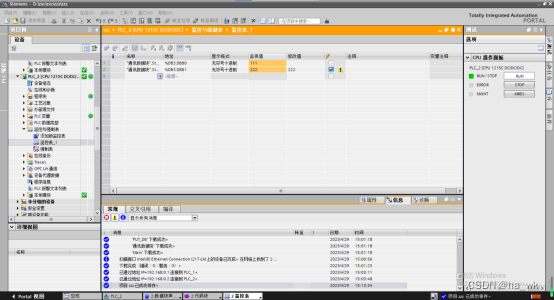 本例中在两个PLC内创建了两个监控表以便观察通讯结果,在PLC1内%DB3.DBB0内值修改为111,可看到PLC2所对应的数据%DB3.DBB0也变为111,实现PLC1向PLC2写入数据
