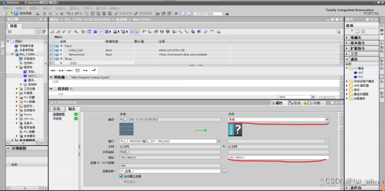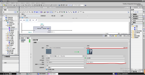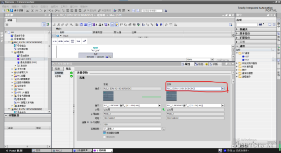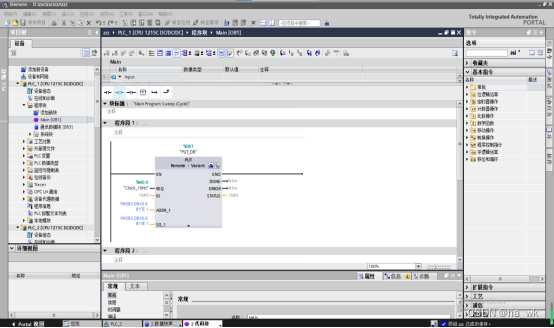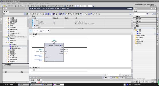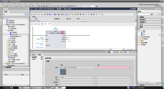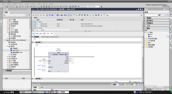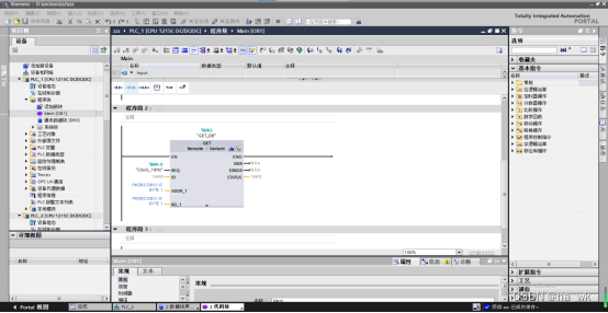 在一个程序块内找到右侧‘指令-通讯-S7通讯’,添加PUT和GET,拖拽至程序段,拖拽后会自动添加数据块,PUT为向远处PLC写入数据,GET为从远处PLC读取数据。