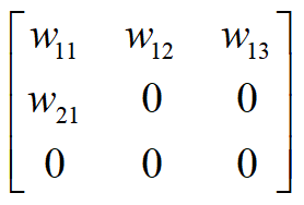 然后定义二维掩膜卷积,所谓掩膜即使卷积中心的右方和下方的权值为0,如下图所示为3x3掩膜卷积核(A型):