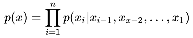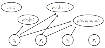 在完全可见置信网络中,不存在不可观察的潜在变量,观察变量的概率被链式法则从维度上进行分解,对于 n 维观察变量x ,其概率表达式为: