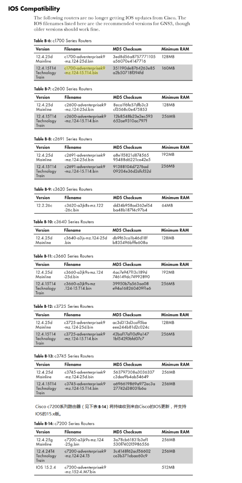 官网建议使用c3640,c3660,c3725,c3745和c7200的IOS,在使用了适当的RAM和Idle-PC值的情况下,这些镜像最为稳定。