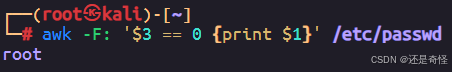 - $3 == 0 : 判断第三字段(UID)是否等于0