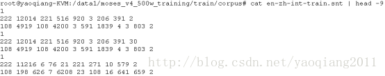 相应的giza.zh-en文件夹下是反过来相对应的对齐信息,这里就不一一截图列举了。