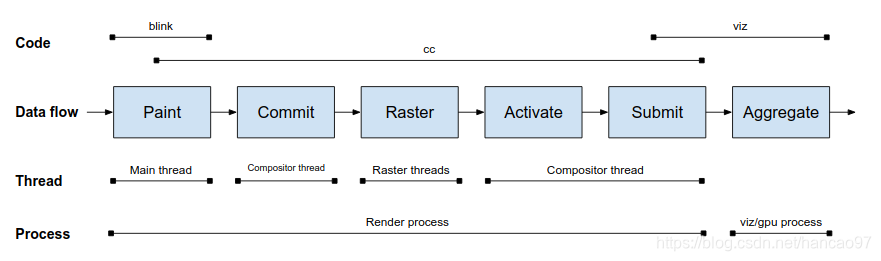 Blink一顿操作 -> paint生成了cc模块的数据源(cc:layer)->commit->(Tiling->)Raster->Active->draw(submit)->Viz(呈像)