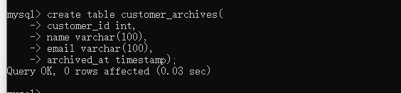-> insert into customer_archives (customer_id,name,email,archived_at)