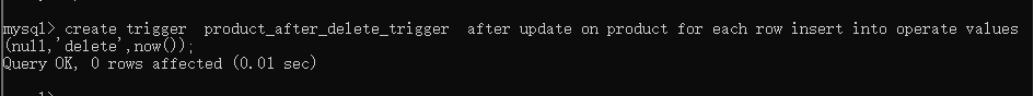 create trigger product_after_delete_trigger after update on product for each row insert into operate values (null,'delete',now());