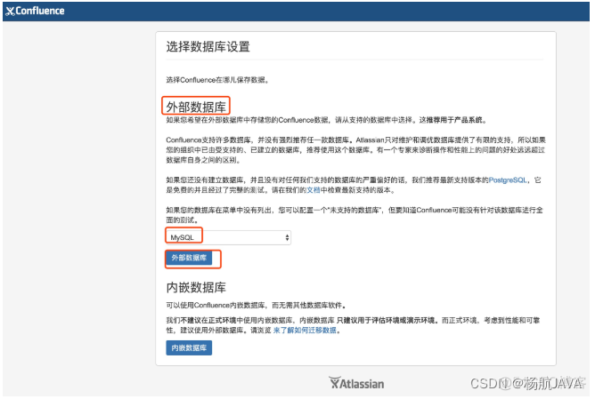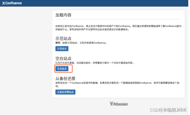 访问http://ip:8090/ 就可以看到Confluence的初始化和配置页面。