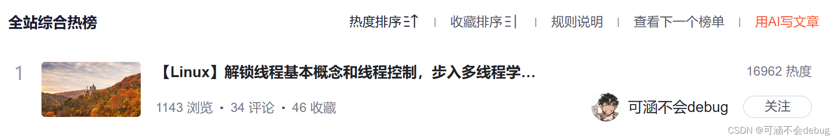 荣登热榜第一! 首先,我要感谢CSDN平台为我们提供了这样一个交流和分享的机会,让我们能够在这个平台上共同成长和进步。 其次,我要感谢所有支持我的大佬们,是你们的鼓励和支持让我有了不断前行的动力。 总之,登上CSDN热榜第一是一份难得的荣誉和肯定,也是一份责任和使命。我将倍加珍惜这份荣誉,继续努力学习和分享~