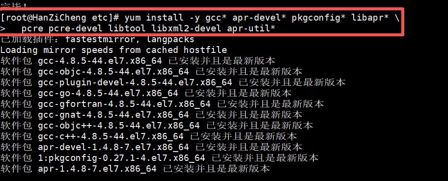 ②yum install -y gcc* apr-devel* pkgconfig* libapr* \