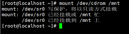 ①mount /dev/cdrom /mnt # 设备名也可能是 /dev/sr0