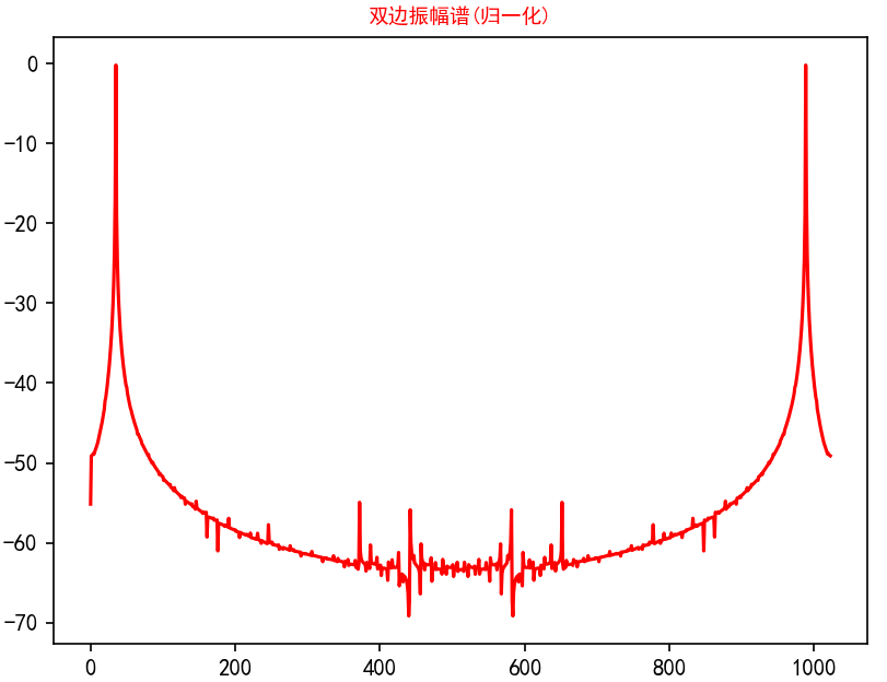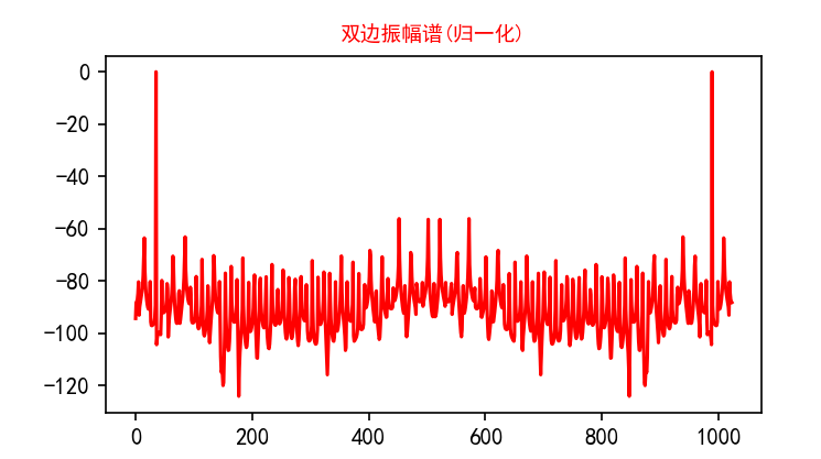 plt.title('双边振幅谱(归一化)', fontsize=9, color='red')