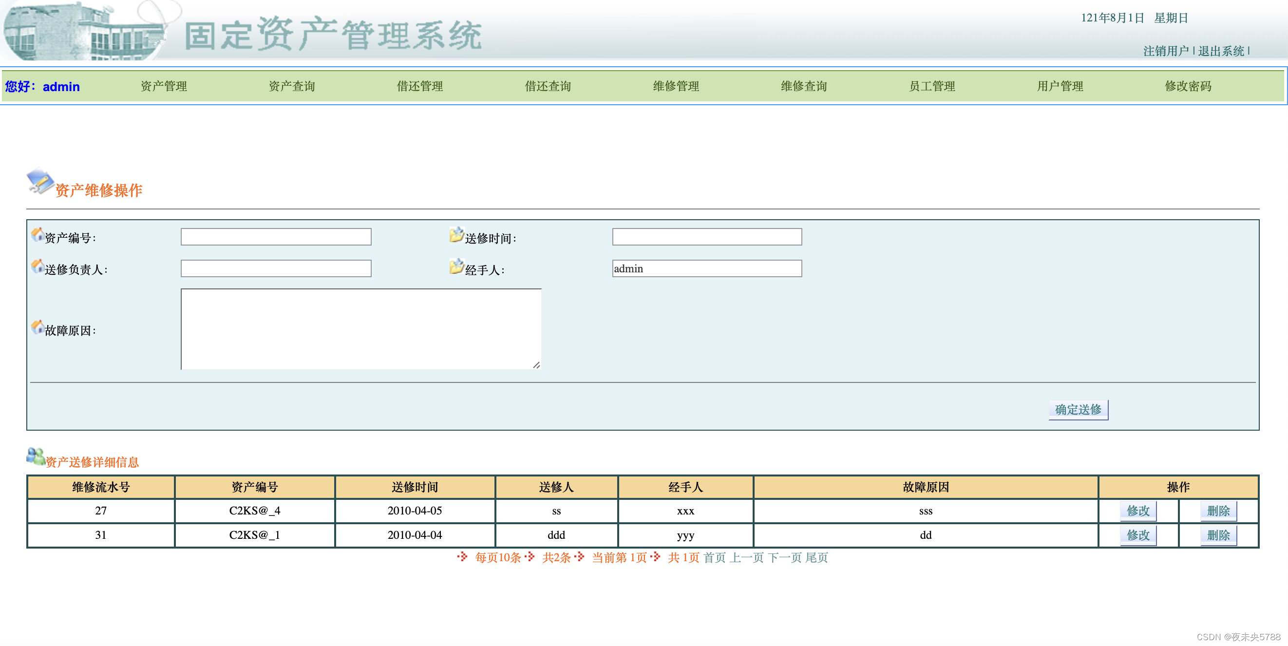 物资的维修、维护物资的信息修改