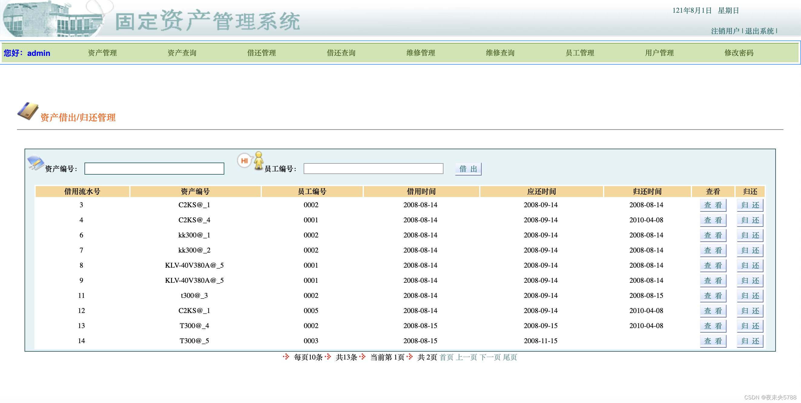 (7)资产借还管理: