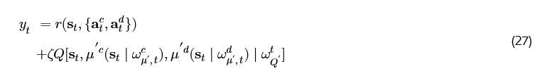 其中 ω_μ'^c, ω_μ'^d, ω_Q' 分别是连续和离散目标 Actor 网络以及 Critic 网络的参数。