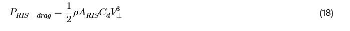 其中 ρ 是空气密度,C_d 是 RIS 阻力系数(对于近方形表面通常为 2.1 [38]),V_⟂ 是速度垂直于 RIS 平面的分量。