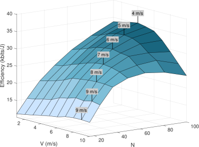 图 6:通信效率随 Aerial-STAR 速度和元件数量的变化。