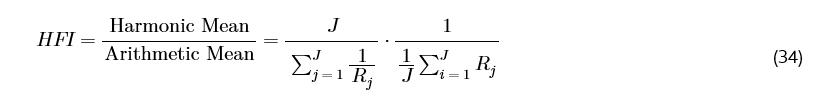 • 我们引入了一种新的公平性度量,称为调和公平指数(HFI)。基于调和平均数,HFI旨在通过允许更公平的资源分配来帮助所有用户达到最低数据速率。