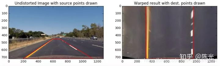 我们在计算透视变换矩阵时计算了两个矩阵M和Minv,使用M能够实现透视变换,使用Minv能够实现逆透视变换。
