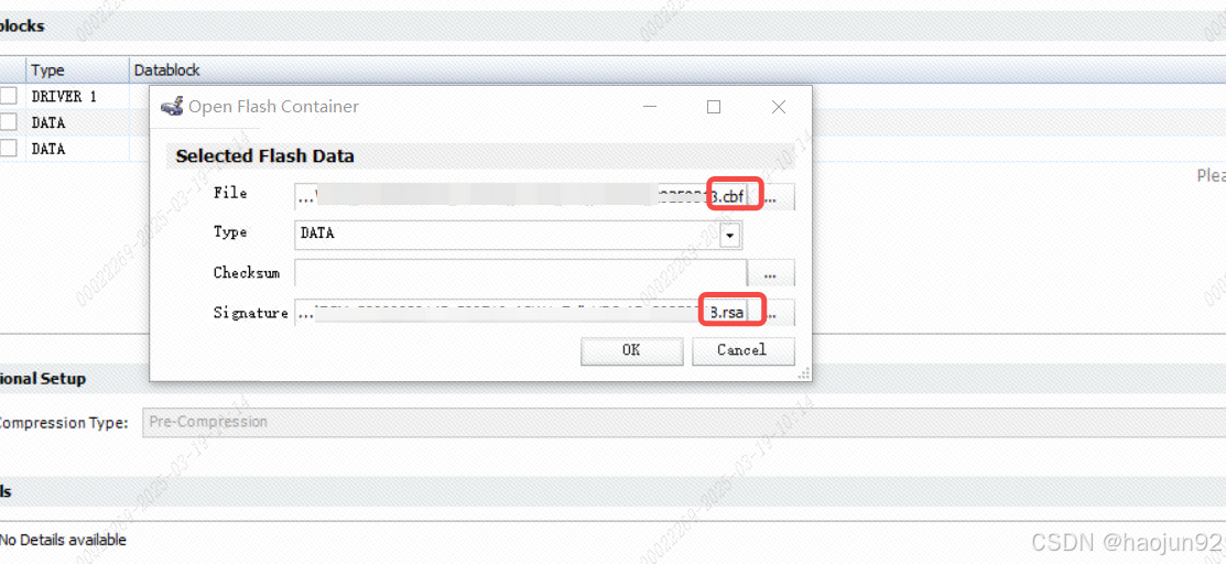 把cbf跟rsa文件加载进去(rsa是根据cbf包生成的签名文件),其他主机厂可能用的是crc格式,这里仅以rsa文件为例。注意:cbf跟rsa文件路径一样的话,vFlash会自动加载,不一致,则需要手动添加。