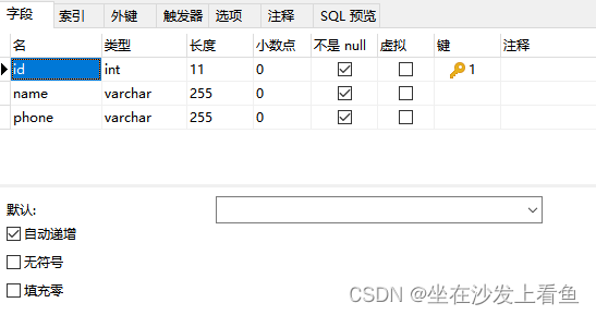 一、新建数据表设置主键唯一